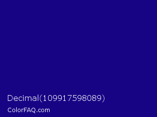 Decimal 109917598089 Color is a dark indigo color and the nearest color is Ultramarine #120a8f. Hex code #170485 and RGB value is rgb(23,4,133). In RGB color space, this color is composed of 9% red, 2% green, 52% blue, In CMYK color space, this color is composed of 83% cyan, 97% magenta, 0% yellow , 48% black , In HSL color space, this color has a hue angle of 249° , 94% saturation and 27% lightness.