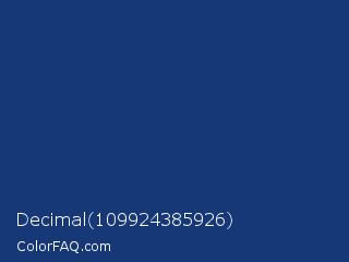 Decimal 109924385926 Color is a dark blue color and the nearest color is Astronaut #283a77. Hex code #173876 and RGB value is rgb(23,56,118). In RGB color space, this color is composed of 9% red, 22% green, 46% blue, In CMYK color space, this color is composed of 81% cyan, 53% magenta, 0% yellow , 54% black , In HSL color space, this color has a hue angle of 219° , 67% saturation and 28% lightness.