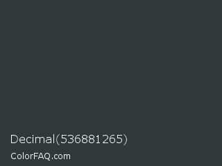 Decimal 536881265 Color is a very dark cyan color and the nearest color is Onyx #353839. Hex code #313837 and RGB value is rgb(49,56,55). In RGB color space, this color is composed of 19% red, 22% green, 22% blue, In CMYK color space, this color is composed of 13% cyan, 0% magenta, 2% yellow , 78% black , In HSL color space, this color has a hue angle of 171° , 7% saturation and 21% lightness.