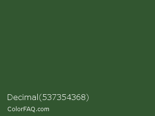 Decimal 537354368 Color is a dark green color and the nearest color is Mughal Green #306030. Hex code #325630 and RGB value is rgb(50,86,48). In RGB color space, this color is composed of 20% red, 34% green, 19% blue, In CMYK color space, this color is composed of 42% cyan, 0% magenta, 44% yellow , 66% black , In HSL color space, this color has a hue angle of 117° , 28% saturation and 26% lightness.