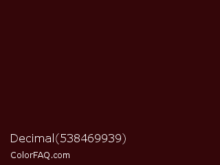 Decimal 538469939 Color is a very dark red color and the nearest color is Chocolate #370202. Hex code #340609 and RGB value is rgb(52,6,9). In RGB color space, this color is composed of 20% red, 2% green, 4% blue, In CMYK color space, this color is composed of 0% cyan, 88% magenta, 83% yellow , 80% black , In HSL color space, this color has a hue angle of 356° , 79% saturation and 11% lightness.
