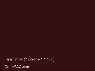 Decimal 538481157 Color is a very dark red color and the nearest color is Tamarind #341515. Hex code #341015 and RGB value is rgb(52,16,21). In RGB color space, this color is composed of 20% red, 6% green, 8% blue, In CMYK color space, this color is composed of 0% cyan, 69% magenta, 60% yellow , 80% black , In HSL color space, this color has a hue angle of 352° , 53% saturation and 13% lightness.