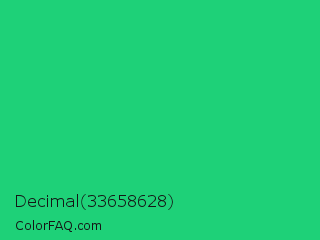 Decimal 33658628 Color is a normal green color and the nearest color is UFO Green #3cd070. Hex code #1ed178 and RGB value is rgb(30,209,120). In RGB color space, this color is composed of 12% red, 82% green, 47% blue, In CMYK color space, this color is composed of 86% cyan, 0% magenta, 43% yellow , 18% black , In HSL color space, this color has a hue angle of 150° , 75% saturation and 47% lightness.