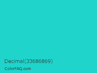 Decimal 33686869 Color is a normal cyan color and the nearest color is Turquoise PWG #30d5c8. Hex code #1ed4cb and RGB value is rgb(30,212,203). In RGB color space, this color is composed of 12% red, 83% green, 80% blue, In CMYK color space, this color is composed of 86% cyan, 0% magenta, 4% yellow , 17% black , In HSL color space, this color has a hue angle of 177° , 75% saturation and 47% lightness.