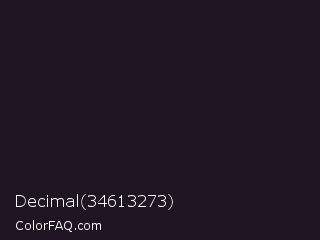 Decimal 34613273 Color is a very dark purple color and the nearest color is Eerie Black #1b1b1b. Hex code #201623 and RGB value is rgb(32,22,35). In RGB color space, this color is composed of 13% red, 9% green, 14% blue, In CMYK color space, this color is composed of 9% cyan, 37% magenta, 0% yellow , 86% black , In HSL color space, this color has a hue angle of 286° , 23% saturation and 11% lightness.