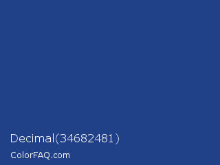 Decimal 34682481 Color is a normal blue color and the nearest color is Bay Of Many #273a81. Hex code #204087 and RGB value is rgb(32,64,135). In RGB color space, this color is composed of 13% red, 25% green, 53% blue, In CMYK color space, this color is composed of 76% cyan, 53% magenta, 0% yellow , 47% black , In HSL color space, this color has a hue angle of 221° , 62% saturation and 33% lightness.