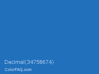 Decimal 34758674 Color is a normal blue color and the nearest color is Denim #1560bd. Hex code #2070bc and RGB value is rgb(32,112,188). In RGB color space, this color is composed of 13% red, 44% green, 74% blue, In CMYK color space, this color is composed of 83% cyan, 40% magenta, 0% yellow , 26% black , In HSL color space, this color has a hue angle of 209° , 71% saturation and 43% lightness.