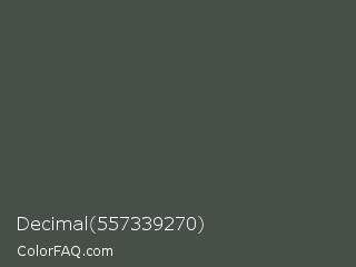 Decimal 557339270 Color is a dark green color and the nearest color is Gray Asparagus #465945. Hex code #465046 and RGB value is rgb(70,80,70). In RGB color space, this color is composed of 27% red, 31% green, 27% blue, In CMYK color space, this color is composed of 13% cyan, 0% magenta, 13% yellow , 69% black , In HSL color space, this color has a hue angle of 120° , 7% saturation and 29% lightness.