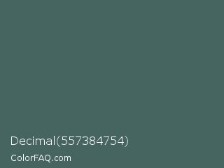 Decimal 557384754 Color is a normal cyan color and the nearest color is Deep Space Sparkle #4a646c. Hex code #466460 and RGB value is rgb(70,100,96). In RGB color space, this color is composed of 27% red, 39% green, 38% blue, In CMYK color space, this color is composed of 30% cyan, 0% magenta, 4% yellow , 61% black , In HSL color space, this color has a hue angle of 172° , 18% saturation and 33% lightness.