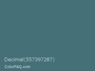 Decimal 557397287 Color is a normal cyan color and the nearest color is Faded Jade #427977. Hex code #467077 and RGB value is rgb(70,112,119). In RGB color space, this color is composed of 27% red, 44% green, 47% blue, In CMYK color space, this color is composed of 41% cyan, 6% magenta, 0% yellow , 53% black , In HSL color space, this color has a hue angle of 189° , 26% saturation and 37% lightness.