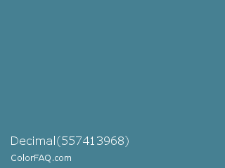 Decimal 557413968 Color is a normal blue color and the nearest color is Smalt Blue #51808f. Hex code #468092 and RGB value is rgb(70,128,146). In RGB color space, this color is composed of 27% red, 50% green, 57% blue, In CMYK color space, this color is composed of 52% cyan, 12% magenta, 0% yellow , 43% black , In HSL color space, this color has a hue angle of 194° , 35% saturation and 42% lightness.