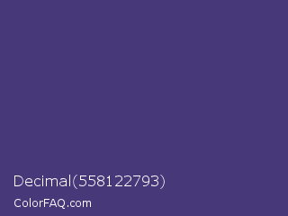 Decimal 558122793 Color is a normal indigo color and the nearest color is Minsk #3f307f. Hex code #473879 and RGB value is rgb(71,56,121). In RGB color space, this color is composed of 28% red, 22% green, 47% blue, In CMYK color space, this color is composed of 41% cyan, 54% magenta, 0% yellow , 53% black , In HSL color space, this color has a hue angle of 254° , 37% saturation and 35% lightness.