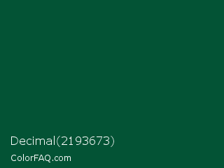 Decimal 2193673 Color is a very dark green color and the nearest color is Sacramento State Green #00563f. Hex code #035335 and RGB value is rgb(3,83,53). In RGB color space, this color is composed of 1% red, 33% green, 21% blue, In CMYK color space, this color is composed of 96% cyan, 0% magenta, 36% yellow , 67% black , In HSL color space, this color has a hue angle of 158° , 93% saturation and 17% lightness.