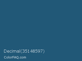 Decimal 35148597 Color is a dark blue color and the nearest color is Blumine #18587a. Hex code #215877 and RGB value is rgb(33,88,119). In RGB color space, this color is composed of 13% red, 35% green, 47% blue, In CMYK color space, this color is composed of 72% cyan, 26% magenta, 0% yellow , 53% black , In HSL color space, this color has a hue angle of 202° , 57% saturation and 30% lightness.