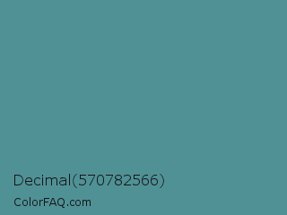 Decimal 570782566 Color is a normal cyan color and the nearest color is Horizon #5a87a0. Hex code #509196 and RGB value is rgb(80,145,150). In RGB color space, this color is composed of 31% red, 57% green, 59% blue, In CMYK color space, this color is composed of 47% cyan, 3% magenta, 0% yellow , 41% black , In HSL color space, this color has a hue angle of 184° , 30% saturation and 45% lightness.
