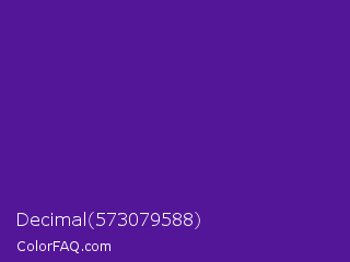 Decimal 573079588 Color is a normal violet color and the nearest color is Daisy Bush #4f2398. Hex code #541698 and RGB value is rgb(84,22,152). In RGB color space, this color is composed of 33% red, 9% green, 60% blue, In CMYK color space, this color is composed of 45% cyan, 86% magenta, 0% yellow , 40% black , In HSL color space, this color has a hue angle of 269° , 75% saturation and 34% lightness.