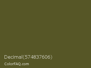 Decimal 574837606 Color is a dark yellow color and the nearest color is Woodland #4d5328. Hex code #565626 and RGB value is rgb(86,86,38). In RGB color space, this color is composed of 34% red, 34% green, 15% blue, In CMYK color space, this color is composed of 0% cyan, 0% magenta, 56% yellow , 66% black , In HSL color space, this color has a hue angle of 60° , 39% saturation and 24% lightness.
