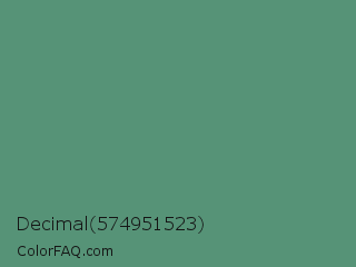 Decimal 574951523 Color is a normal green color and the nearest color is Wintergreen Dream #56887d. Hex code #569377 and RGB value is rgb(86,147,119). In RGB color space, this color is composed of 34% red, 58% green, 47% blue, In CMYK color space, this color is composed of 41% cyan, 0% magenta, 19% yellow , 42% black , In HSL color space, this color has a hue angle of 152° , 26% saturation and 46% lightness.