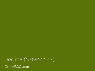 Decimal 576951143 Color is a dark lime color and the nearest color is Avocado #568203. Hex code #597307 and RGB value is rgb(89,115,7). In RGB color space, this color is composed of 35% red, 45% green, 3% blue, In CMYK color space, this color is composed of 23% cyan, 0% magenta, 94% yellow , 55% black , In HSL color space, this color has a hue angle of 74° , 89% saturation and 24% lightness.
