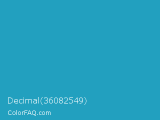 Decimal 36082549 Color is a normal cyan color and the nearest color is Pacific Blue #1ca9c9. Hex code #22a0bf and RGB value is rgb(34,160,191). In RGB color space, this color is composed of 13% red, 63% green, 75% blue, In CMYK color space, this color is composed of 82% cyan, 16% magenta, 0% yellow , 25% black , In HSL color space, this color has a hue angle of 192° , 70% saturation and 44% lightness.