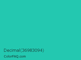 Decimal 36983094 Color is a normal cyan color and the nearest color is Java #1fc2c2. Hex code #23c8b0 and RGB value is rgb(35,200,176). In RGB color space, this color is composed of 14% red, 78% green, 69% blue, In CMYK color space, this color is composed of 83% cyan, 0% magenta, 12% yellow , 22% black , In HSL color space, this color has a hue angle of 171° , 70% saturation and 46% lightness.