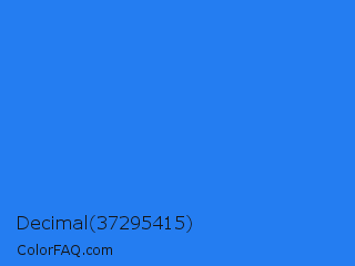 Decimal 37295415 Color is a normal blue color and the nearest color is Blue Crayola #1f75fe. Hex code #247df1 and RGB value is rgb(36,125,241). In RGB color space, this color is composed of 14% red, 49% green, 95% blue, In CMYK color space, this color is composed of 85% cyan, 48% magenta, 0% yellow , 5% black , In HSL color space, this color has a hue angle of 214° , 88% saturation and 54% lightness.