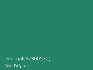 Decimal 37300532 Color is a normal green color and the nearest color is Eucalyptus #278a5b. Hex code #248366 and RGB value is rgb(36,131,102). In RGB color space, this color is composed of 14% red, 51% green, 40% blue, In CMYK color space, this color is composed of 73% cyan, 0% magenta, 22% yellow , 49% black , In HSL color space, this color has a hue angle of 162° , 57% saturation and 33% lightness.