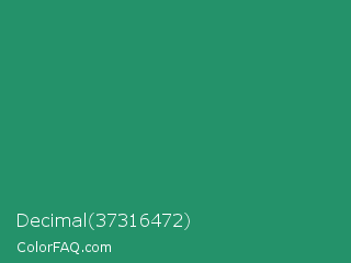 Decimal 37316472 Color is a normal green color and the nearest color is Eucalyptus #278a5b. Hex code #24926a and RGB value is rgb(36,146,106). In RGB color space, this color is composed of 14% red, 57% green, 42% blue, In CMYK color space, this color is composed of 75% cyan, 0% magenta, 27% yellow , 43% black , In HSL color space, this color has a hue angle of 158° , 60% saturation and 36% lightness.