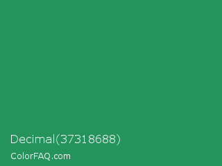 Decimal 37318688 Color is a normal green color and the nearest color is Eucalyptus #278a5b. Hex code #24935c and RGB value is rgb(36,147,92). In RGB color space, this color is composed of 14% red, 58% green, 36% blue, In CMYK color space, this color is composed of 76% cyan, 0% magenta, 37% yellow , 42% black , In HSL color space, this color has a hue angle of 150° , 61% saturation and 36% lightness.
