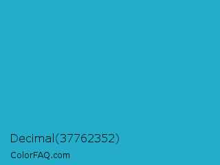 Decimal 37762352 Color is a normal cyan color and the nearest color is Ball Blue #21abcd. Hex code #24acca and RGB value is rgb(36,172,202). In RGB color space, this color is composed of 14% red, 67% green, 79% blue, In CMYK color space, this color is composed of 82% cyan, 15% magenta, 0% yellow , 21% black , In HSL color space, this color has a hue angle of 191° , 70% saturation and 47% lightness.