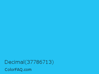 Decimal 37786713 Color is a normal blue color and the nearest color is Spiro Disco Ball #0fc0fc. Hex code #24c3f3 and RGB value is rgb(36,195,243). In RGB color space, this color is composed of 14% red, 76% green, 95% blue, In CMYK color space, this color is composed of 85% cyan, 20% magenta, 0% yellow , 5% black , In HSL color space, this color has a hue angle of 194° , 90% saturation and 55% lightness.