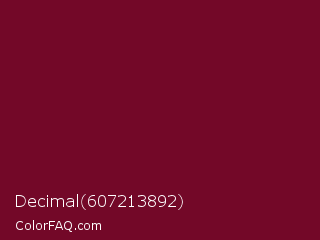 Decimal 607213892 Color is a dark rose color and the nearest color is Black Rose #67032d. Hex code #730828 and RGB value is rgb(115,8,40). In RGB color space, this color is composed of 45% red, 3% green, 16% blue, In CMYK color space, this color is composed of 0% cyan, 93% magenta, 65% yellow , 55% black , In HSL color space, this color has a hue angle of 342° , 87% saturation and 24% lightness.