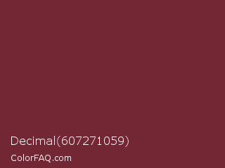 Decimal 607271059 Color is a dark red color and the nearest color is Wine #722f37. Hex code #732735 and RGB value is rgb(115,39,53). In RGB color space, this color is composed of 45% red, 15% green, 21% blue, In CMYK color space, this color is composed of 0% cyan, 66% magenta, 54% yellow , 55% black , In HSL color space, this color has a hue angle of 349° , 49% saturation and 30% lightness.