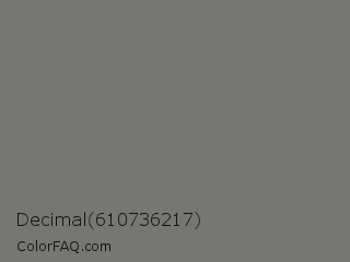Decimal 610736217 Color is a normal orange color and the nearest color is Sonic Silver #757575. Hex code #787673 and RGB value is rgb(120,118,115). In RGB color space, this color is composed of 47% red, 46% green, 45% blue, In CMYK color space, this color is composed of 0% cyan, 2% magenta, 4% yellow , 53% black , In HSL color space, this color has a hue angle of 36° , 2% saturation and 46% lightness.