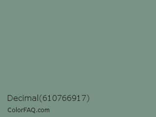 Decimal 610766917 Color is a normal green color and the nearest color is Spanish Green #819885. Hex code #789285 and RGB value is rgb(120,146,133). In RGB color space, this color is composed of 47% red, 57% green, 52% blue, In CMYK color space, this color is composed of 18% cyan, 0% magenta, 9% yellow , 43% black , In HSL color space, this color has a hue angle of 150° , 11% saturation and 52% lightness.