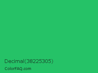 Decimal 38225305 Color is a normal green color and the nearest color is UFO Green #3cd070. Hex code #25c267 and RGB value is rgb(37,194,103). In RGB color space, this color is composed of 15% red, 76% green, 40% blue, In CMYK color space, this color is composed of 81% cyan, 0% magenta, 47% yellow , 24% black , In HSL color space, this color has a hue angle of 145° , 68% saturation and 45% lightness.