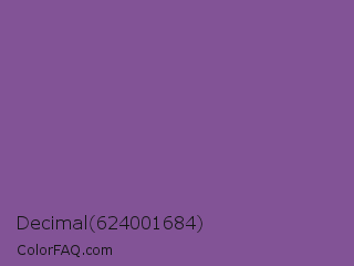 Decimal 624001684 Color is a normal purple color and the nearest color is Dark Lavender #734f96. Hex code #825396 and RGB value is rgb(130,83,150). In RGB color space, this color is composed of 51% red, 33% green, 59% blue, In CMYK color space, this color is composed of 13% cyan, 45% magenta, 0% yellow , 41% black , In HSL color space, this color has a hue angle of 282° , 29% saturation and 46% lightness.