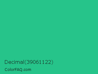 Decimal 39061122 Color is a normal green color and the nearest color is Mountain Meadow #30ba8f. Hex code #26c48a and RGB value is rgb(38,196,138). In RGB color space, this color is composed of 15% red, 77% green, 54% blue, In CMYK color space, this color is composed of 81% cyan, 0% magenta, 30% yellow , 23% black , In HSL color space, this color has a hue angle of 158° , 68% saturation and 46% lightness.
