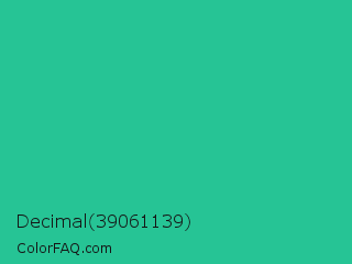 Decimal 39061139 Color is a normal green color and the nearest color is Mountain Meadow #30ba8f. Hex code #26c495 and RGB value is rgb(38,196,149). In RGB color space, this color is composed of 15% red, 77% green, 58% blue, In CMYK color space, this color is composed of 81% cyan, 0% magenta, 24% yellow , 23% black , In HSL color space, this color has a hue angle of 162° , 68% saturation and 46% lightness.