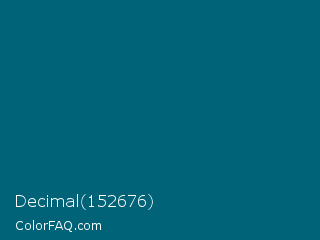 Decimal 152676 Color is a dark cyan color and the nearest color is Mosque #036a6e. Hex code #006378 and RGB value is rgb(0,99,120). In RGB color space, this color is composed of 0% red, 39% green, 47% blue, In CMYK color space, this color is composed of 100% cyan, 18% magenta, 0% yellow , 53% black , In HSL color space, this color has a hue angle of 191° , 100% saturation and 24% lightness.