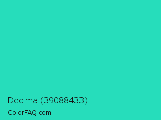 Decimal 39088433 Color is a normal cyan color and the nearest color is Turquoise PWG #30d5c8. Hex code #26ddbb and RGB value is rgb(38,221,187). In RGB color space, this color is composed of 15% red, 87% green, 73% blue, In CMYK color space, this color is composed of 83% cyan, 0% magenta, 15% yellow , 13% black , In HSL color space, this color has a hue angle of 169° , 73% saturation and 51% lightness.