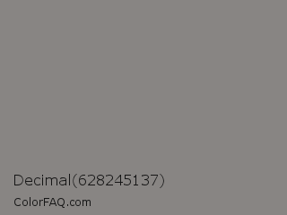 Decimal 628245137 Color is a normal orange color and the nearest color is Battleship Grey #848482. Hex code #888583 and RGB value is rgb(136,133,131). In RGB color space, this color is composed of 53% red, 52% green, 51% blue, In CMYK color space, this color is composed of 0% cyan, 2% magenta, 4% yellow , 47% black , In HSL color space, this color has a hue angle of 24° , 2% saturation and 52% lightness.