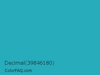 Decimal 39846180 Color is a normal cyan color and the nearest color is Pacific Blue #1ca9c9. Hex code #27acbc and RGB value is rgb(39,172,188). In RGB color space, this color is composed of 15% red, 67% green, 74% blue, In CMYK color space, this color is composed of 79% cyan, 9% magenta, 0% yellow , 26% black , In HSL color space, this color has a hue angle of 186° , 66% saturation and 45% lightness.