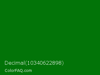Decimal 10340622898 Color is a dark green color and the nearest color is Japanese Laurel #0a6906. Hex code #027408 and RGB value is rgb(2,116,8). In RGB color space, this color is composed of 1% red, 45% green, 3% blue, In CMYK color space, this color is composed of 98% cyan, 0% magenta, 93% yellow , 55% black , In HSL color space, this color has a hue angle of 123° , 97% saturation and 23% lightness.