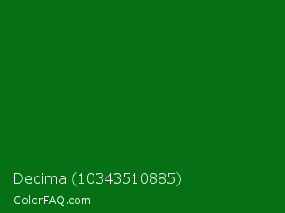 Decimal 10343510885 Color is a dark green color and the nearest color is Deep Green #056608. Hex code #067015 and RGB value is rgb(6,112,21). In RGB color space, this color is composed of 2% red, 44% green, 8% blue, In CMYK color space, this color is composed of 95% cyan, 0% magenta, 81% yellow , 56% black , In HSL color space, this color has a hue angle of 128° , 90% saturation and 23% lightness.