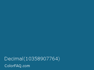 Decimal 10358907764 Color is a dark blue color and the nearest color is Blue Sapphire #126180. Hex code #136486 and RGB value is rgb(19,100,134). In RGB color space, this color is composed of 7% red, 39% green, 53% blue, In CMYK color space, this color is composed of 86% cyan, 25% magenta, 0% yellow , 47% black , In HSL color space, this color has a hue angle of 198° , 75% saturation and 30% lightness.