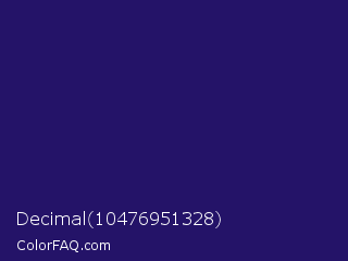 Decimal 10476951328 Color is a dark indigo color and the nearest color is Lucky Point #1a1a68. Hex code #241368 and RGB value is rgb(36,19,104). In RGB color space, this color is composed of 14% red, 7% green, 41% blue, In CMYK color space, this color is composed of 65% cyan, 82% magenta, 0% yellow , 59% black , In HSL color space, this color has a hue angle of 252° , 69% saturation and 24% lightness.