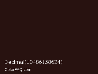 Decimal 10486158624 Color is a very dark red color and the nearest color is Coffee Bean #2a140e. Hex code #281210 and RGB value is rgb(40,18,16). In RGB color space, this color is composed of 16% red, 7% green, 6% blue, In CMYK color space, this color is composed of 0% cyan, 55% magenta, 60% yellow , 84% black , In HSL color space, this color has a hue angle of 5° , 43% saturation and 11% lightness.