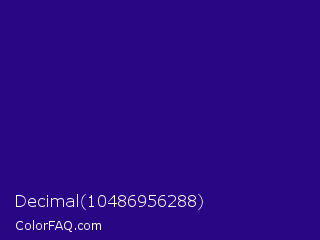 Decimal 10486956288 Color is a dark indigo color and the nearest color is Blue Gem #2c0e8c. Hex code #290684 and RGB value is rgb(41,6,132). In RGB color space, this color is composed of 16% red, 2% green, 52% blue, In CMYK color space, this color is composed of 69% cyan, 95% magenta, 0% yellow , 48% black , In HSL color space, this color has a hue angle of 257° , 91% saturation and 27% lightness.
