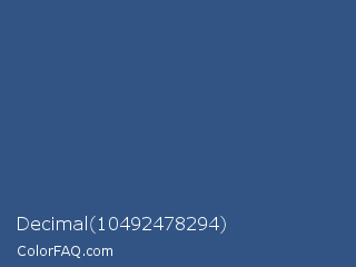 Decimal 10492478294 Color is a normal blue color and the nearest color is Chambray #354e8c. Hex code #315484 and RGB value is rgb(49,84,132). In RGB color space, this color is composed of 19% red, 33% green, 52% blue, In CMYK color space, this color is composed of 63% cyan, 36% magenta, 0% yellow , 48% black , In HSL color space, this color has a hue angle of 215° , 46% saturation and 35% lightness.
